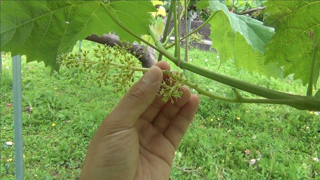 ブドウの花は房の根元から先端に向かって咲いていくんだ。