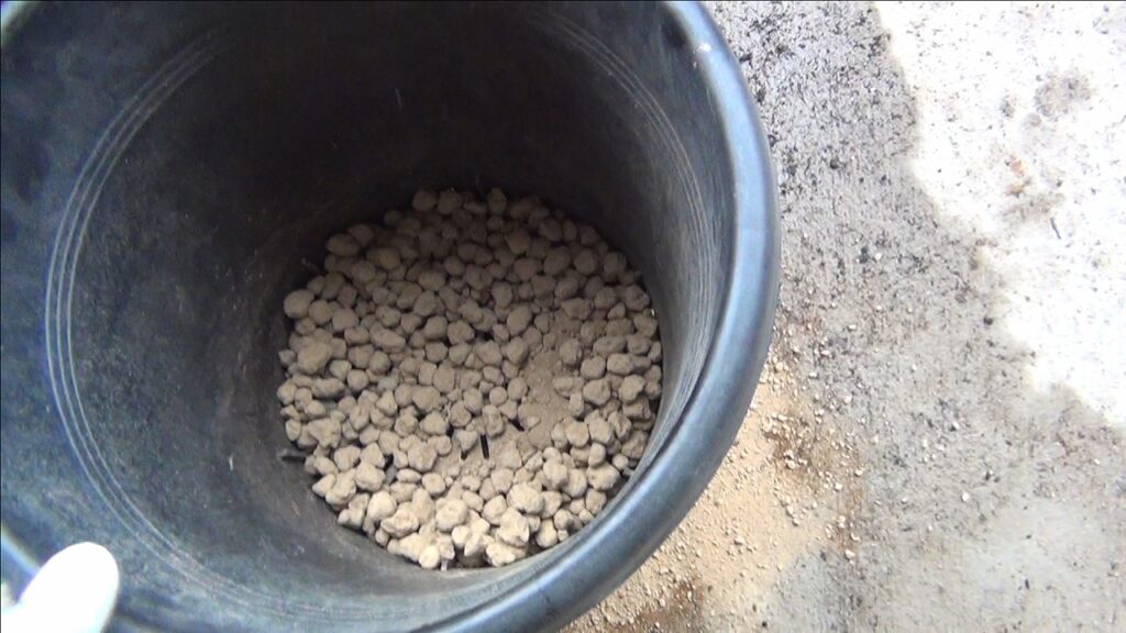 ①鉢底石を敷く