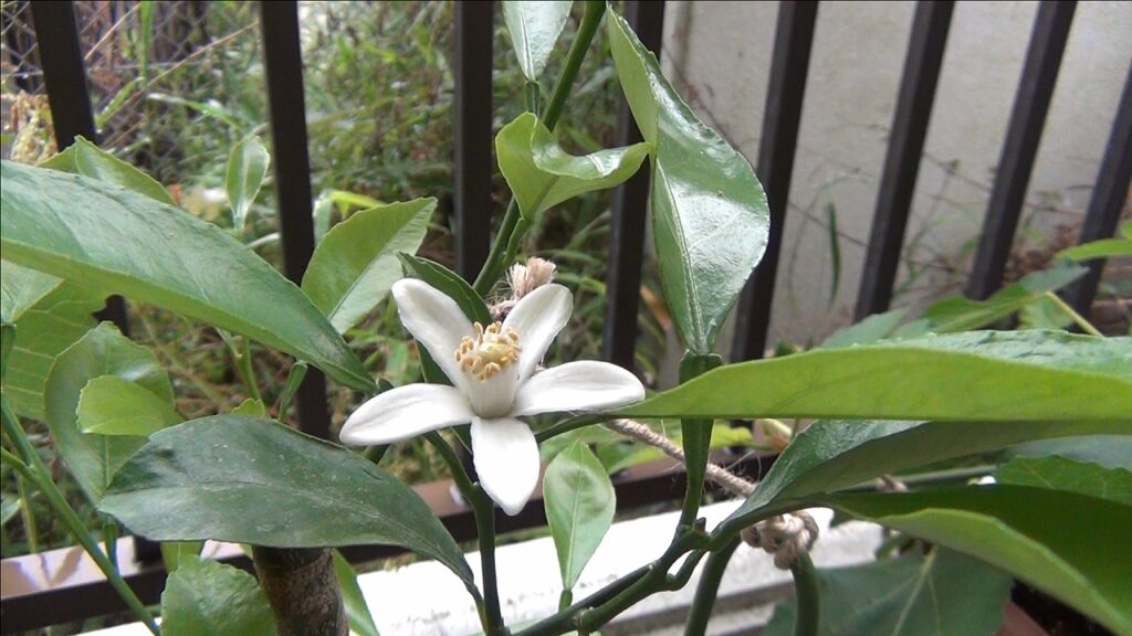 カンキツ・レモンはとても可憐な白い花が咲くよ。見た目も美しいし、香りもとても爽やか。