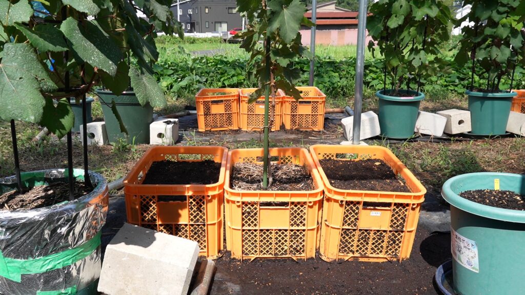今回はコンテナ栽培の見本としてブドウを栽培していくよ!