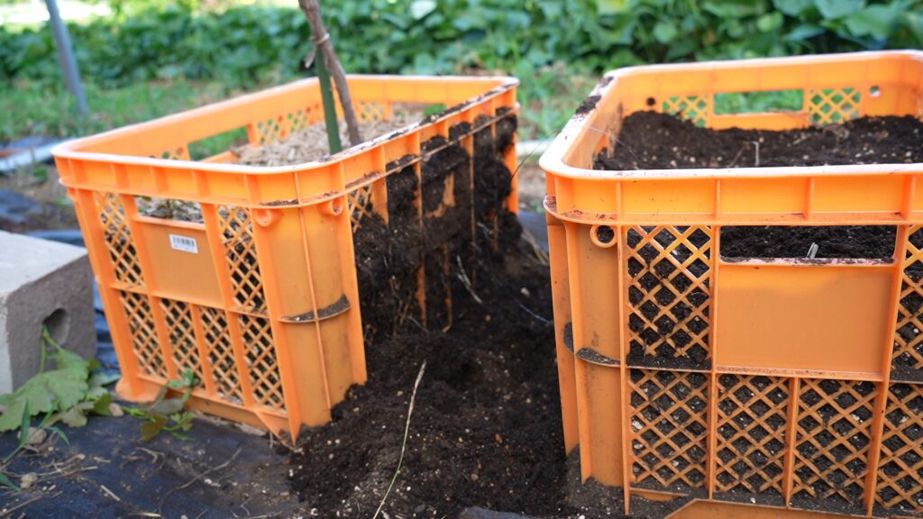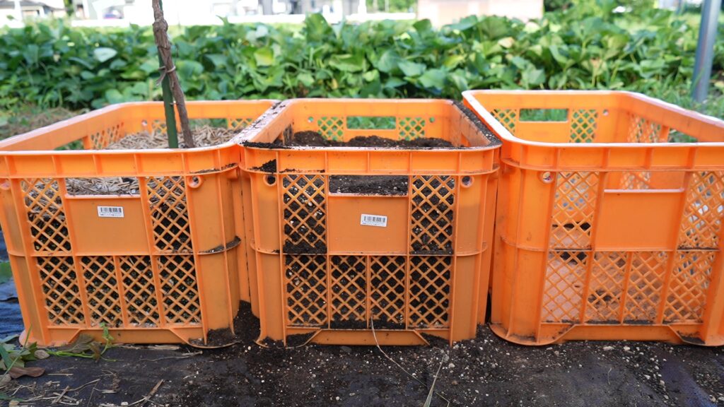 植え付け1年目はコンテナ3個で栽培していくよ。