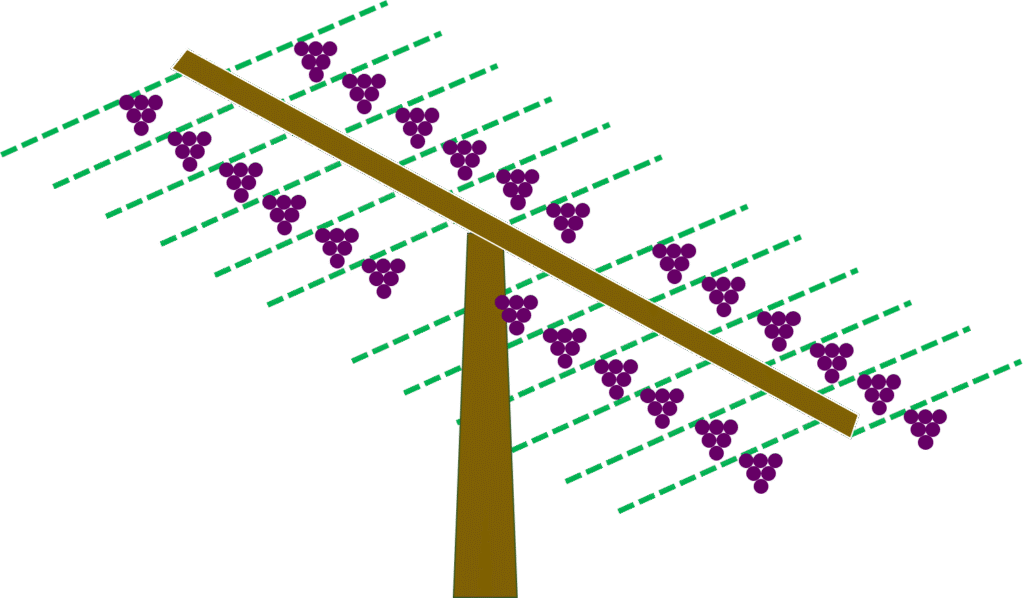 ②枝を棚線に誘引し、木の骨格を育成