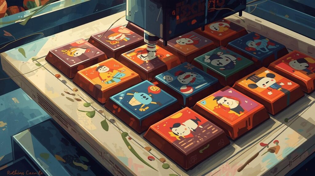 バースデーケーキのチョコレートに写真やイラストを印刷したり、クッキーやマカロンにロゴを印刷したりが多いかな。