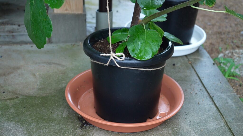 今回は鉢植え果樹にとって必須の誘引について、ちょっと役立つ方法を語っていくよ。